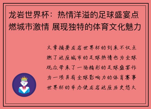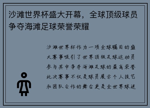 本文将探讨那些首次亮相世界杯赛场的震撼瞬间,以及它们背后不为人知的故事。从球员的初登场,到为国家争光的激动时刻,再到那些改变比赛走向的关键时刻,世界杯赛场总是充满了传奇与奇迹。在这些充满戏剧性的瞬间背后,往往藏着许多鲜为人知的奋斗历程与艰辛过程。本文将从四个方面深入阐述这一主题:首次亮相世界杯的震撼...